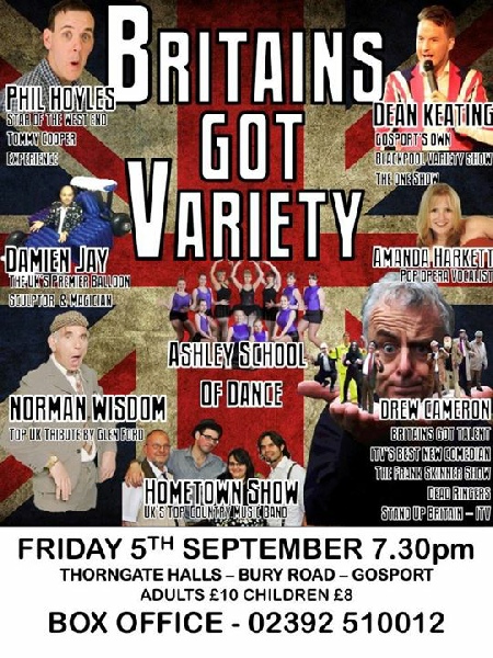 Britain’s Got Variety is hitting Gosport this September. Armed with some of the best UK ACTS around this is one night you will not forget. Variety is back with a big bang! SO who’s Going to be there: